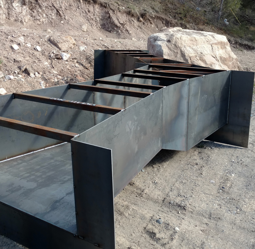 For years Parshall flumes have been built out of cheap galvanized material. WWE has solved this problem when they started building all of their flumes out of 1/4″ steel plate. Our flumes are multiple grades above the traditional galvanized flumes. Our steel flumes are built for a lifetime and should never need replaced. We also can build them out of stainless steel if someone needs one for a specific application. Setting our flumes is substantially easier, get them close to level and drive them in with a piece of equipment until they are level. We can also put the staff gauge on whatever side you prefer to make checking levels easier. If in a very remote place, we can weld the attachment to the flume to where it can be checked remotely. Once you buy one of our flumes you will never buy a cheap galvanized one again.